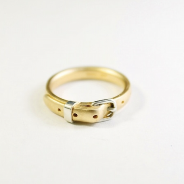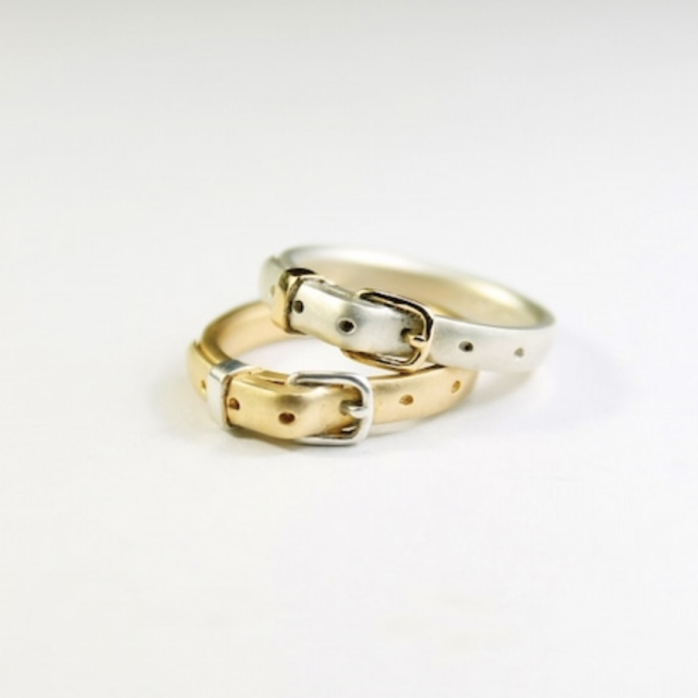ベルトがモチーフのリングは、身につけると本当に指にベルトを巻いているかのよう。